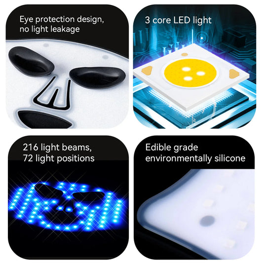 Hello Face Portable Red Infrared Blue LED Light Therapy Face Mask Acne Treatment, Skin Rejuvenation, Home Use for All Skin Types